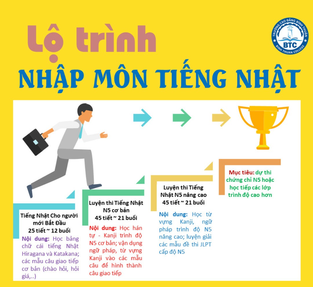 Cung cấp cho người học các kiến thức cơ bản về tiếng Nhật giúp người học có thể giao tiếp những hội thoại hằng ngày và phát triển các kỹ năng nghe, nói, đọc, viết ở cấp độ N5 cơ bản; giúp học viên mở rộng hiểu biết về con người, cuộc sống, truyền thống văn hóa của người Nhật.