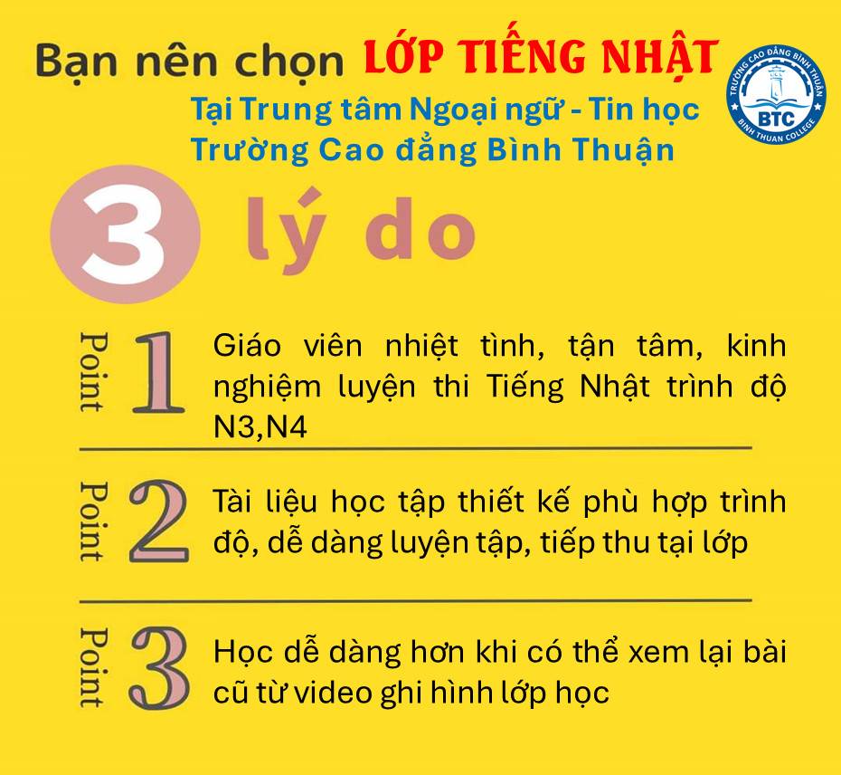 8/ Mọi chi tiết liên hệ: Trung tâm Ngoại ngữ - Tin học Trường Cao đẳng Bình Thuận.