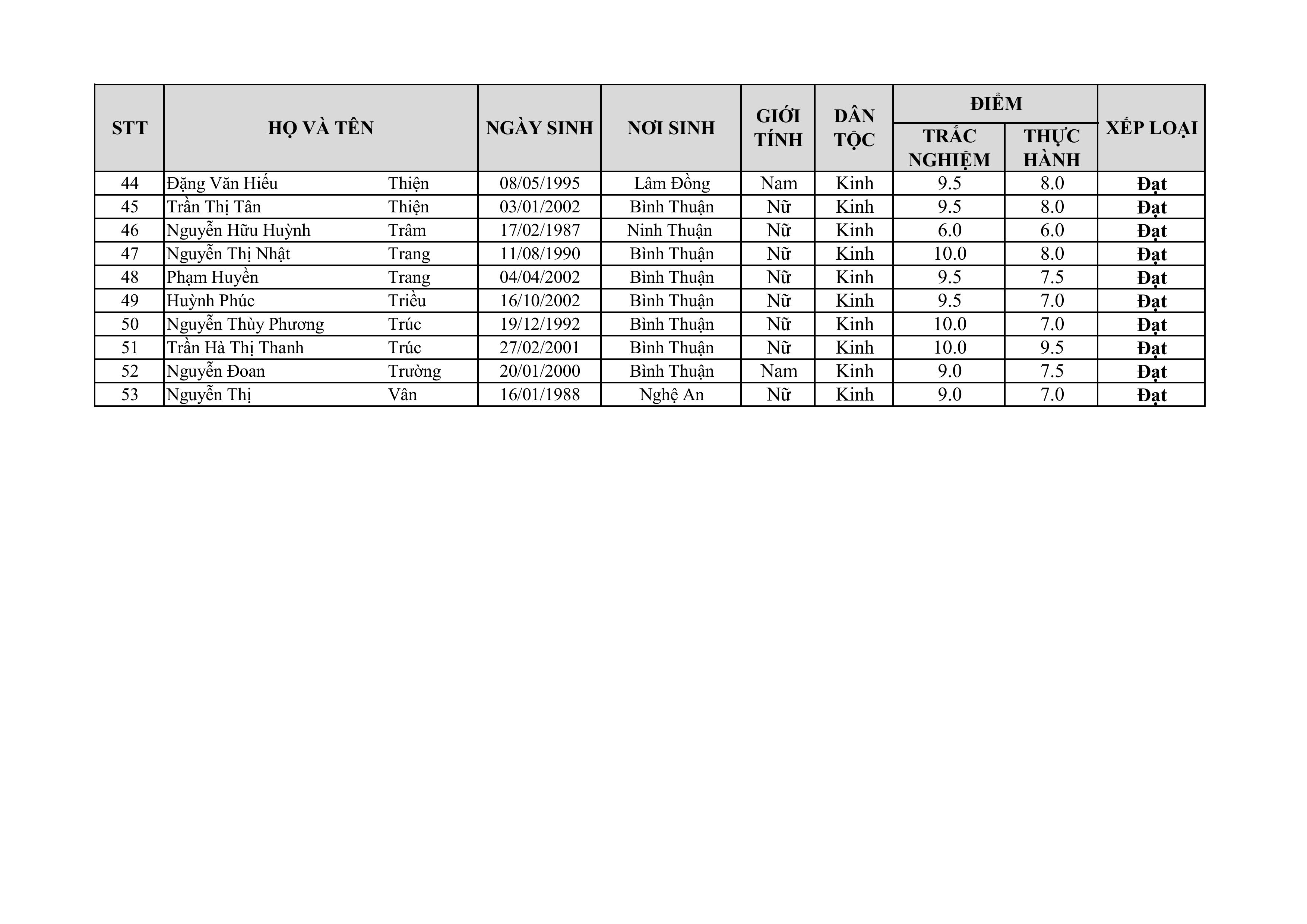 THÔNG BÁO KẾT QUẢ THI CHỨNG CHỈ CNTT KHÓA NGÀY 01.06.2025