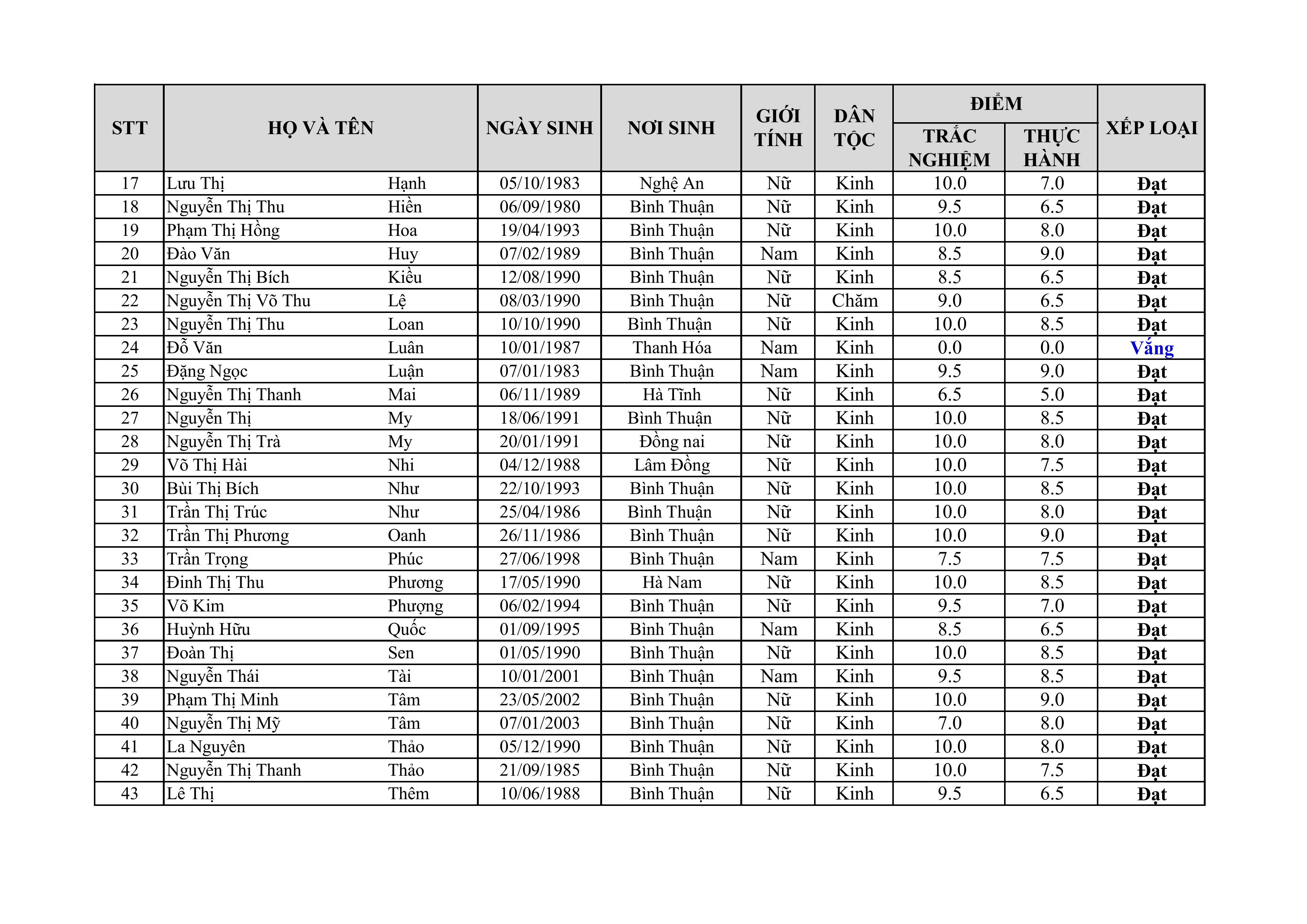 THÔNG BÁO KẾT QUẢ THI CHỨNG CHỈ CNTT KHÓA NGÀY 01.12.2024