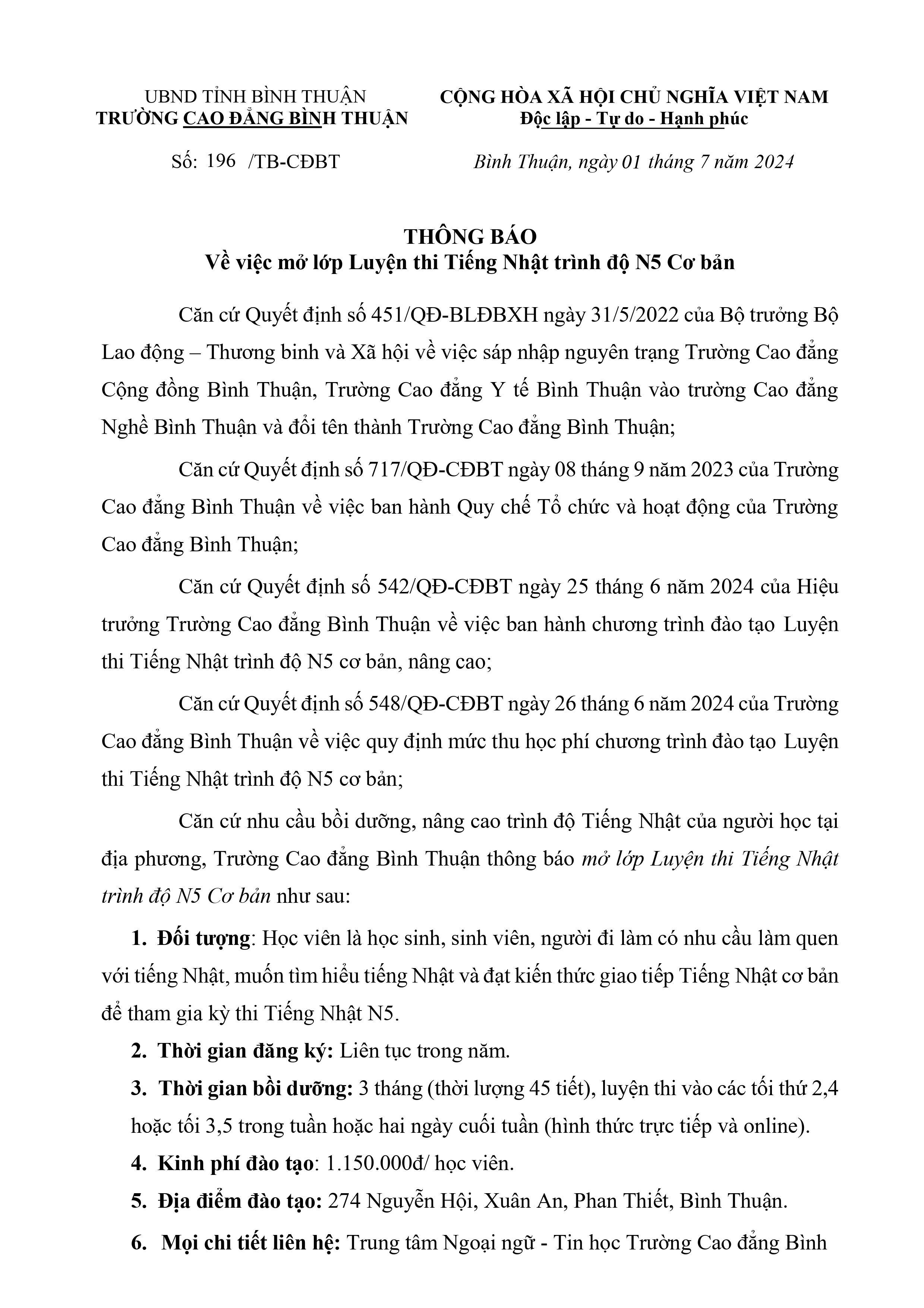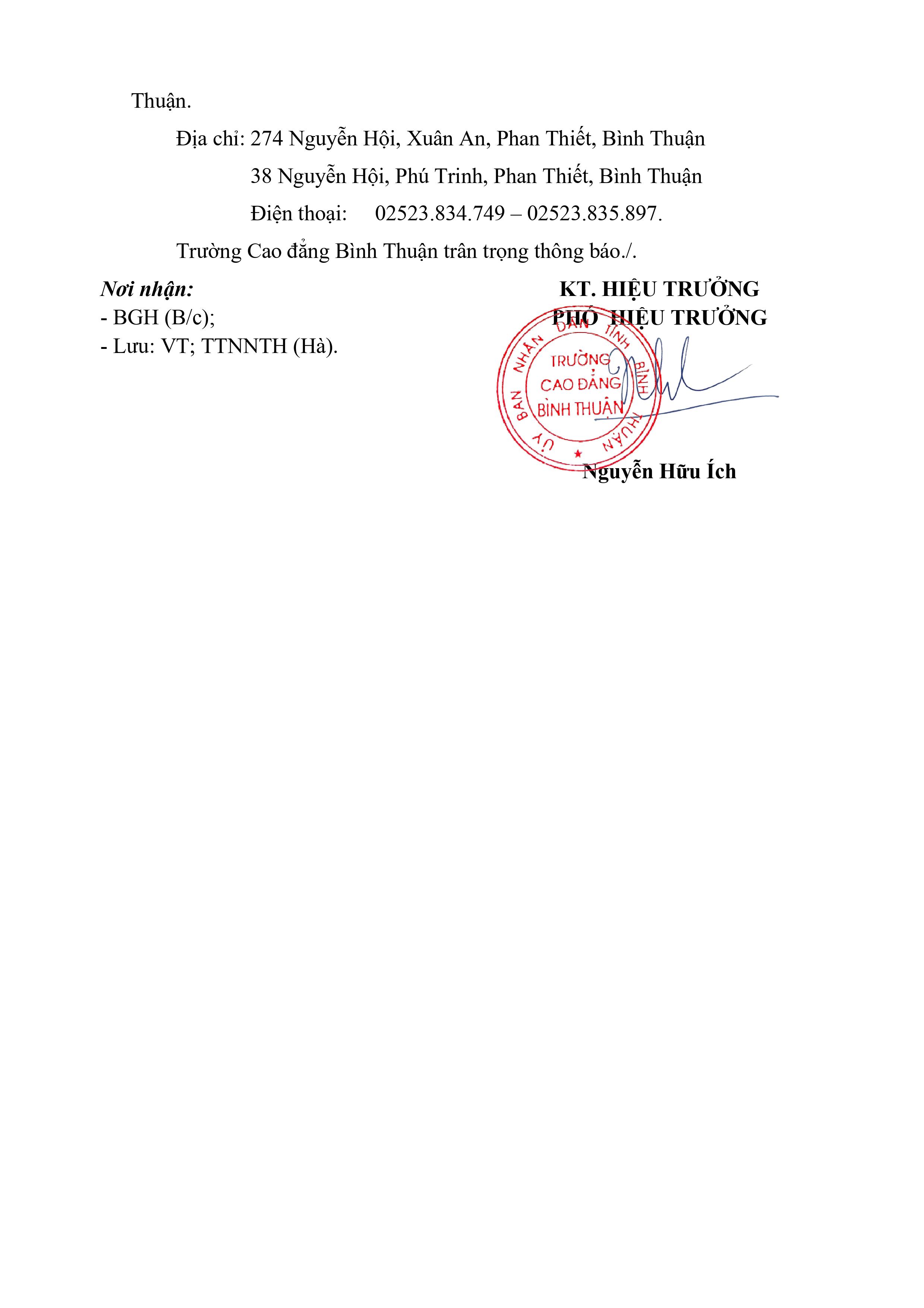 TRƯỜNG CAO ĐẲNG BÌNH THUẬN