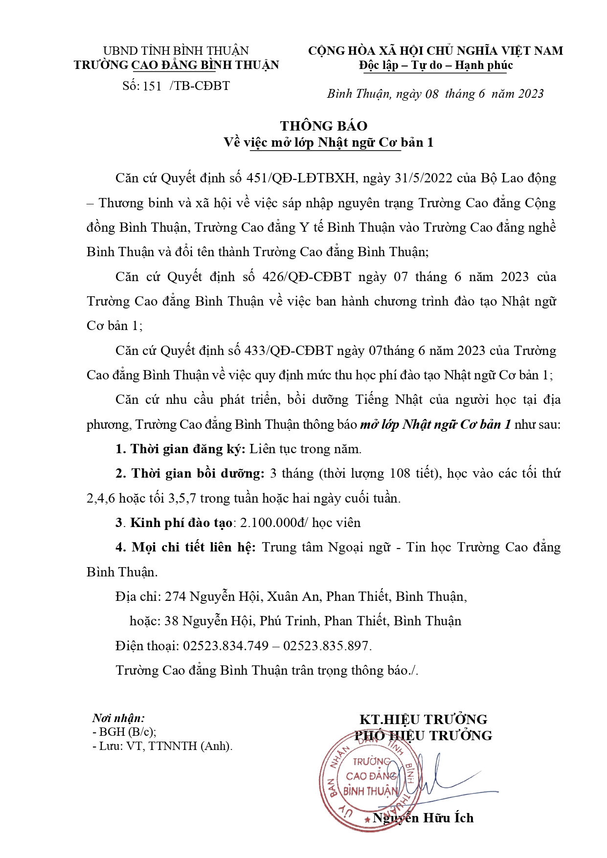 TRƯỜNG CAO ĐẲNG BÌNH THUẬN