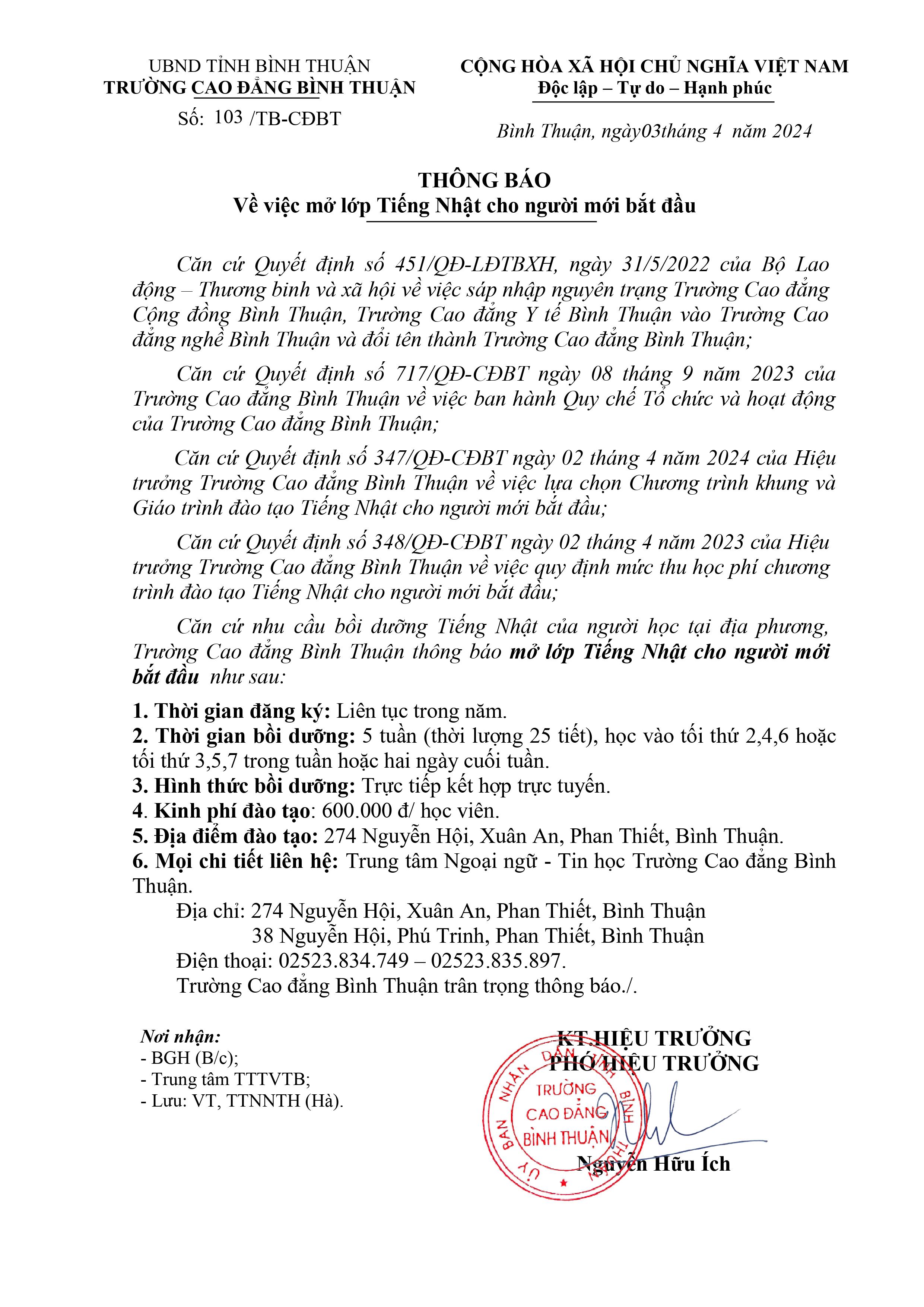 THÔNG BÁO MỞ LỚP NHẬT NGỮ CƠ BẢN 1
