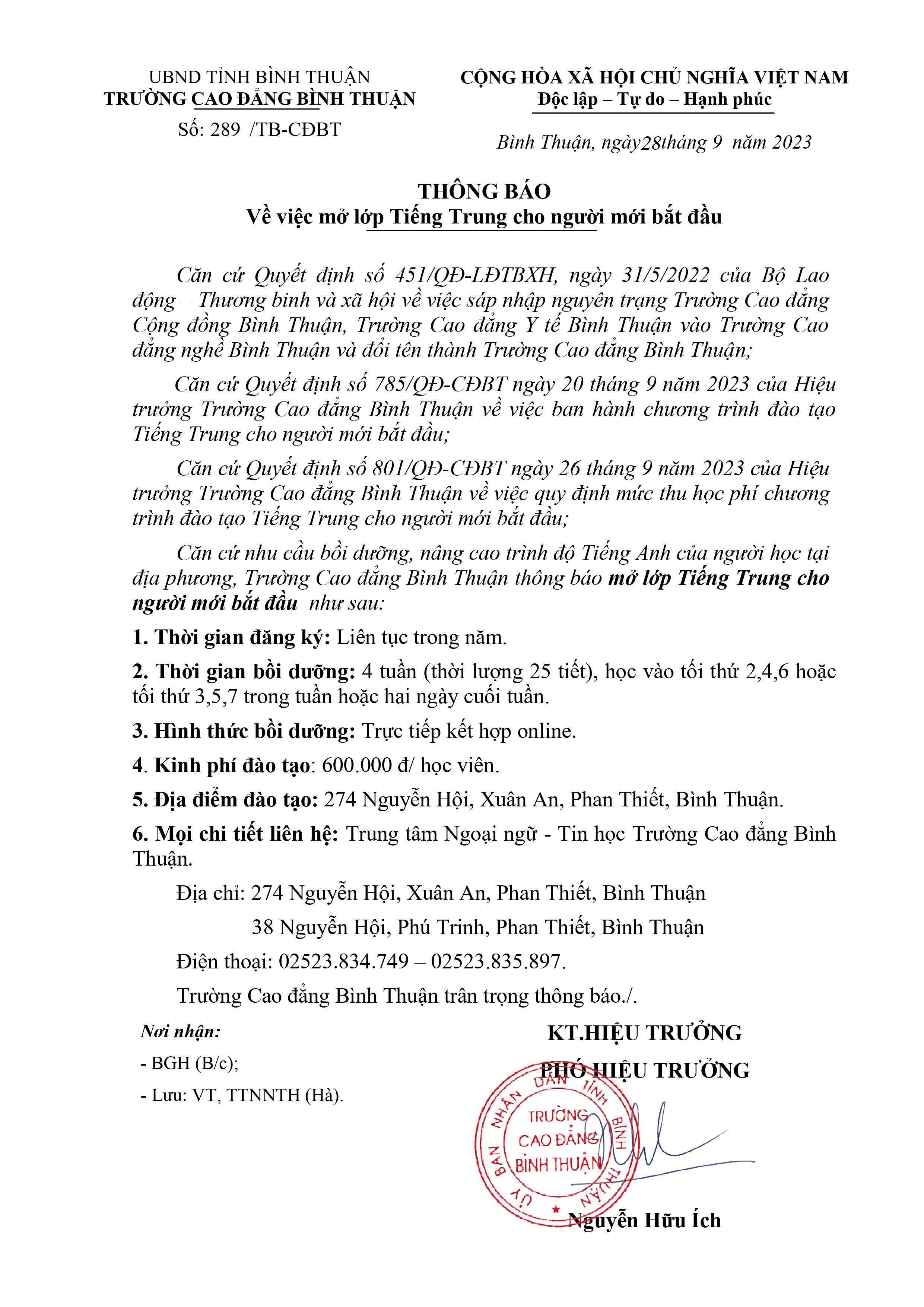 TRƯỜNG CAO ĐẲNG BÌNH THUẬN