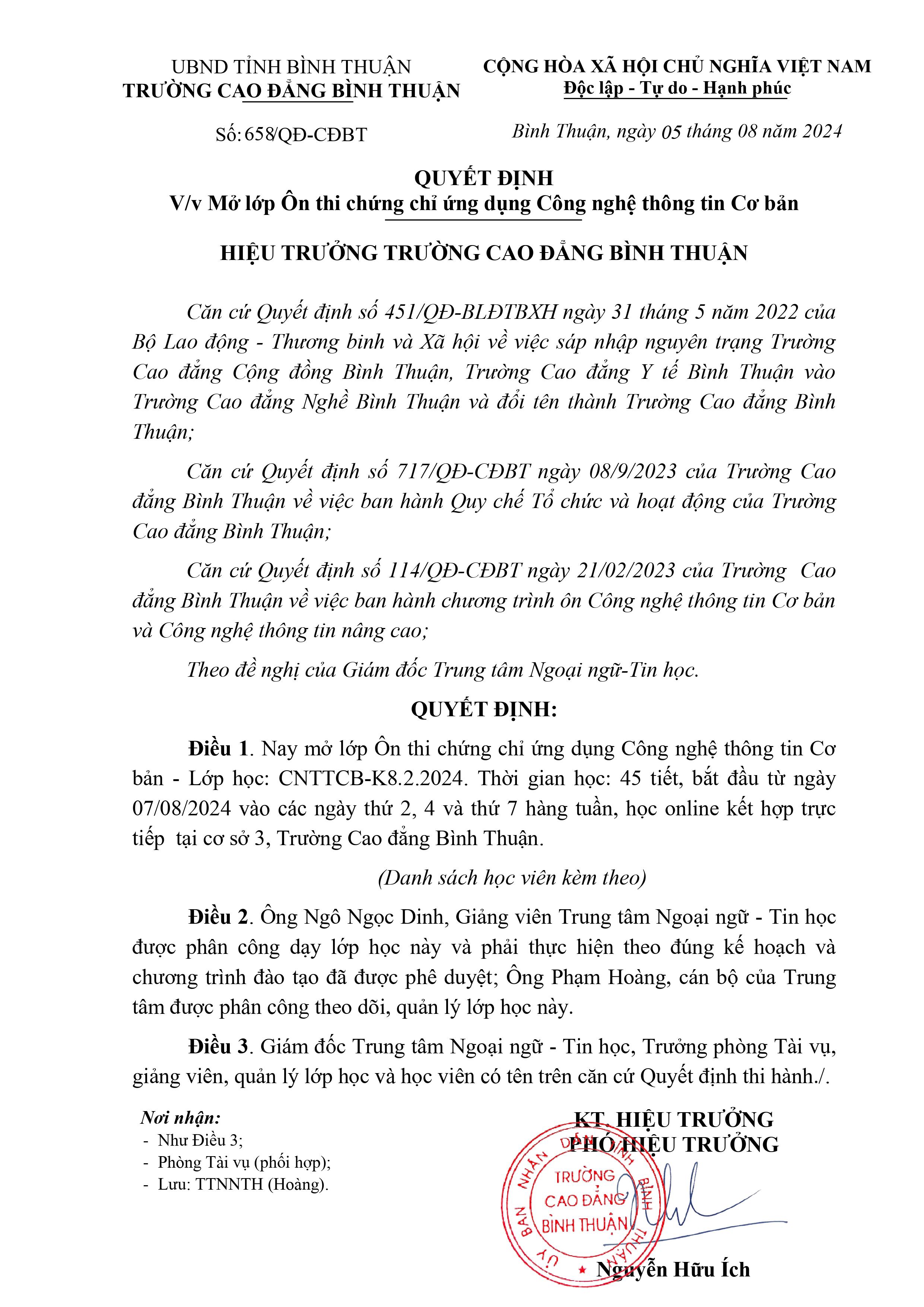TRƯỜNG CAO ĐẲNG BÌNH THUẬN